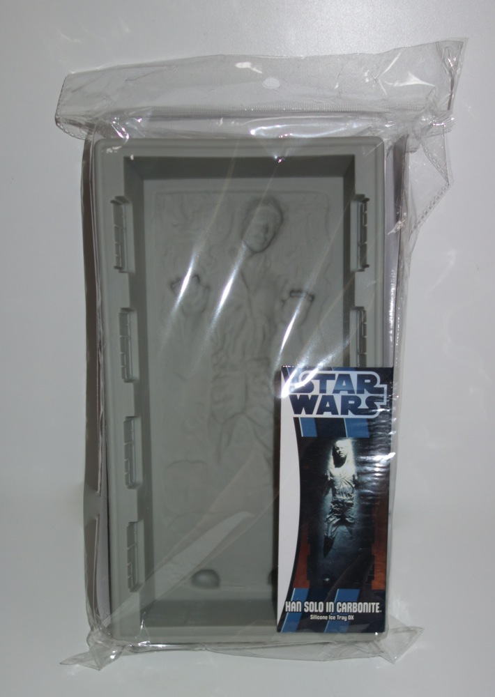 Of course, you need some liquid refreshment, so I decided to finally get some use out of the Kotobukiya Han Solo in Carbonite DX ice tray that I got a while back, and make some punch. The mold is around 12 inches tall, or roughly 1/6 scale. The idea was to fill the mold with grape juice and then float it in the punch like an ice ring. The punch bowl ended up being too small for this to work quite the way I had envisioned it, and it turns out that grape juice doesn’t hold detail as well as ice, so a lot of the fine details were lost. Still, it was recognizable.