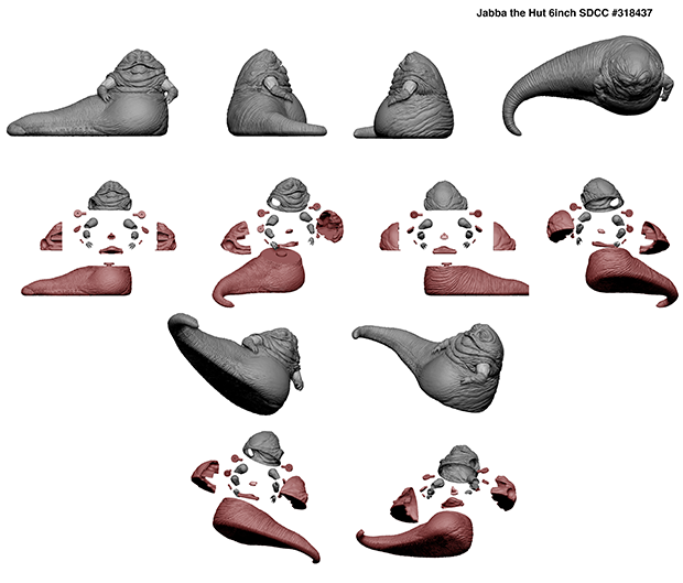 The folks at Mental_Floss have posted an interesting article about the creation of the new 6″ scale Black Series Jabba the Hutt figure. There are some very interesting tidbits of information. The biggest surprise for me was that they designed all of the Black Series figures 100% digitally — no physical sculpting was involved. I wonder how common this is nowadays. I still have the impression of toys being first physically sculpted by artists, but it sounds like things are definitely changing.