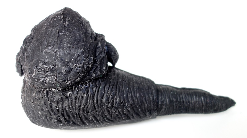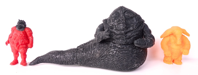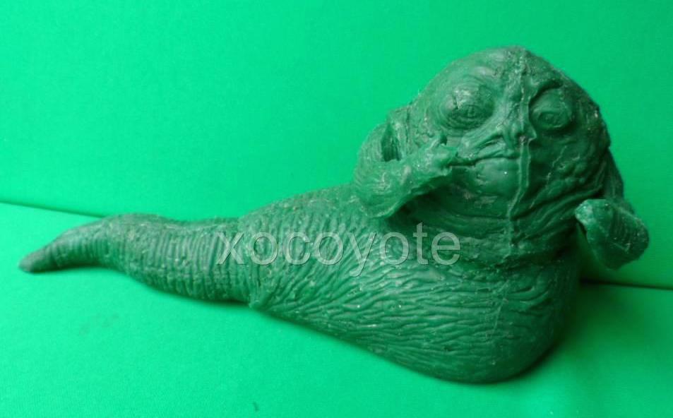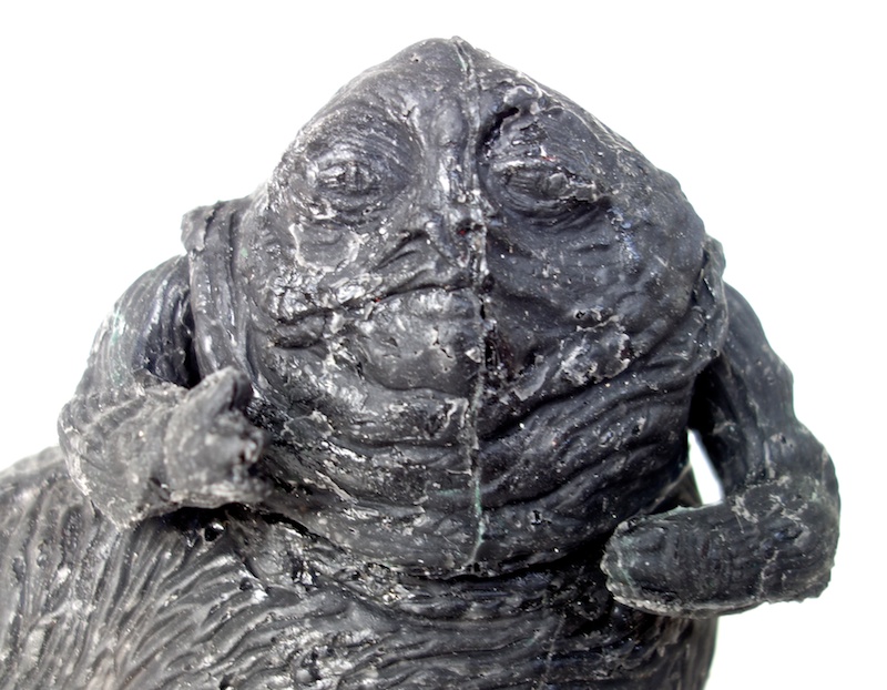 Unlike the others, which are just blocks of solid rubber, this Jabba is squishy and filled partially with air. It looks like it was actually made in pieces and glued together, similar to the way the actual vintage Jabba was assembled. Despite its rather rough appearance, such as the very visible mold line right down the middle of the face, this must have taken some time and effort to produce.
