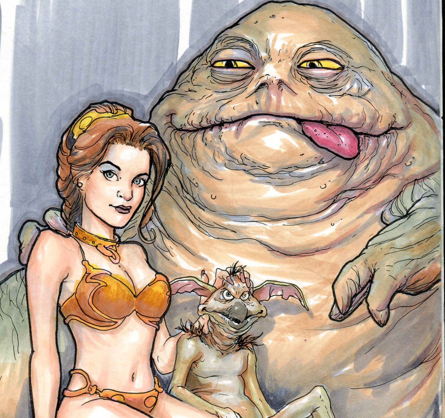 I really like what Freddy did with all of the characters here. Of course, Leia is very stylized and doesn’t bear much resemblance to Carrie Fisher, but she’s quite well done. Jabba in particular manages to look both cute and menacing at the same time. It appears to have been drawn with ink and markers.
