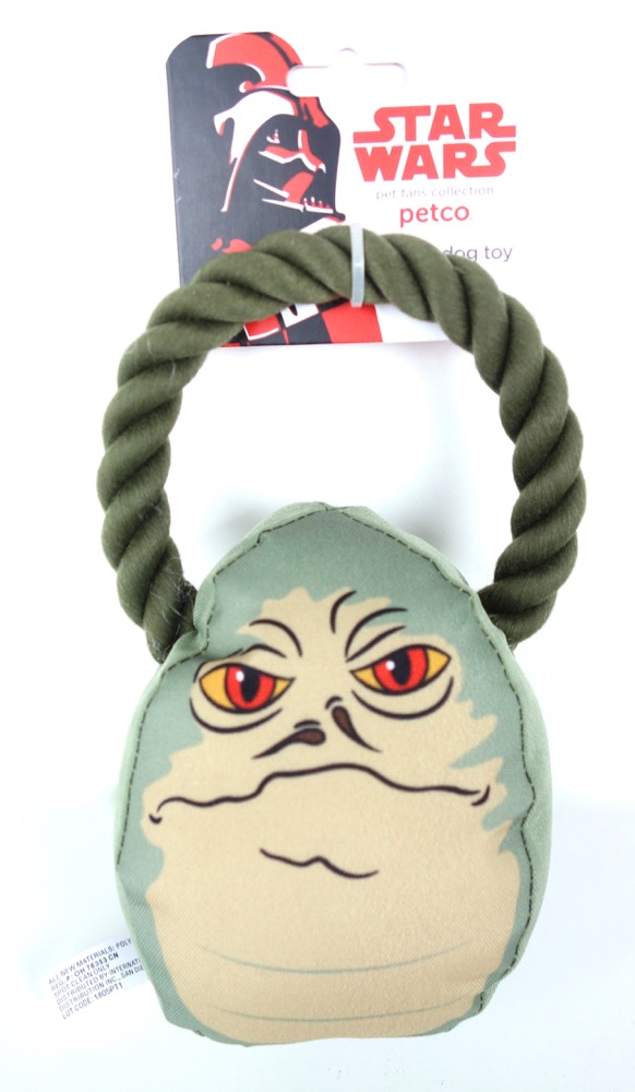 I wouldn’t have thought when I first posted about Petco’s line of Star Wars products two years ago that they would be doing well enough to come out with even more merchandise at this point, but here we are. In the past, I’ve posted about their very nice Jabba the Hutt dog toy (with lots of squeakers!) as well as a Jabba the Hutt dog toy that could easily pass as a plush toy for kids. But the item above is more of a chew toy that you might use to play tug-of-war with your dog. It’s cute, although not my favorite of Petco’s offerings. They have a whole line of different characters in this style — even a wampa!