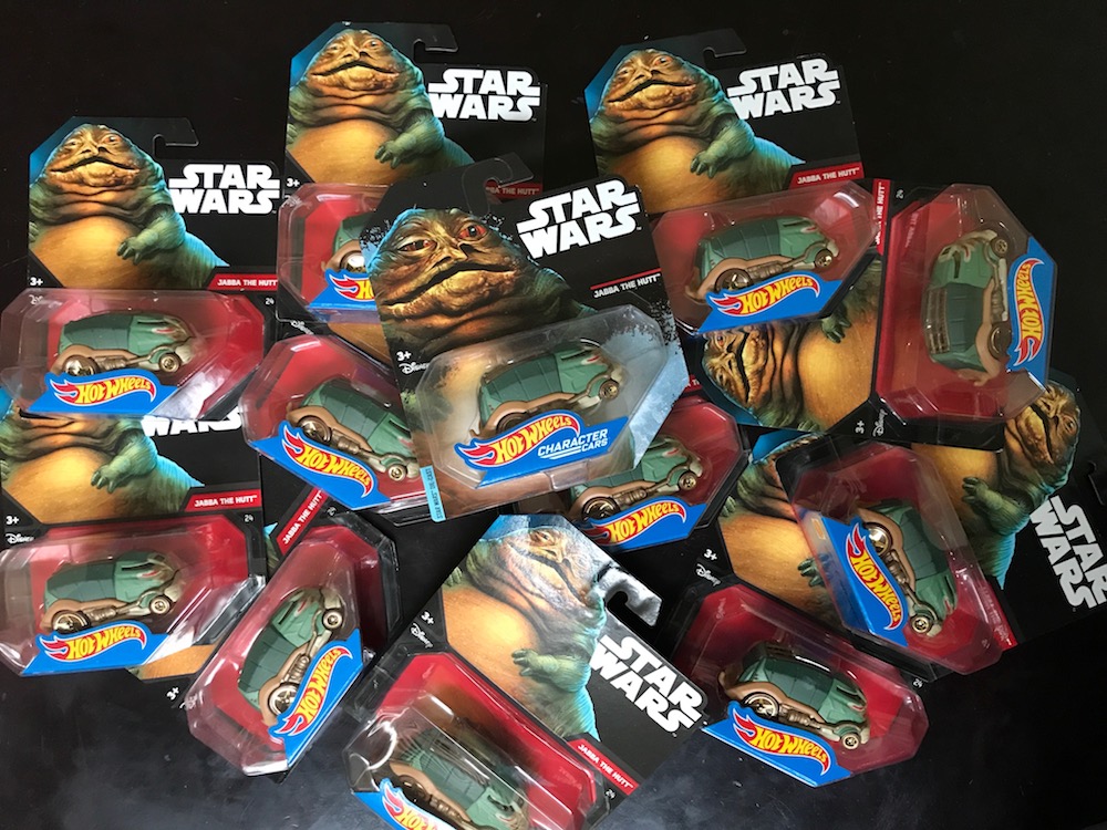 Even though I don’t particularly like die-cast cars, I’ve spent a lot of time looking for the Jabba the Hutt Character Car by Hot Wheels. While I didn’t make special trips to search for it, every time I was in a store that carried the Star Wars Hot Wheels cars, I made a point to check whether they had a Jabba, and I literally never found one after months of looking. It seems that for whatever reason, the Jabba car was mostly relegated to discount stores (and also to Canadian retailers, it seems).
