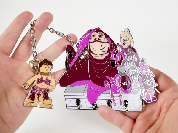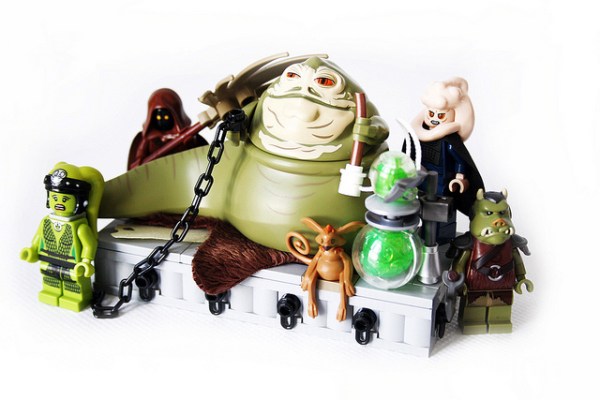 Sometimes things appear on eBay that I had no idea even existed. Before this item cropped up, I didn’t even know that Little League pins were a thing, but after doing some research it seems that individual teams have them made and then trade them with other teams at the Little League World Series. This one is obviously based on the LEGO Jabba the Hutt included in the new Jabba’s Palace set, but it includes some things that are not in that set, like the Jawa and the differently shaped hooka pipe. A little poking around Google Image Search revealed that they based this on a photo from Flickr, which you can see below, although they did make a few changes. My hunch is that they just traced it in Illustrator to make the design for the pin.