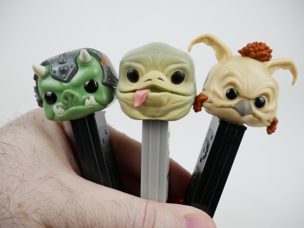 Naturally, they work just as every other PEZ dispenser — you bend the head back and a little capsule of candy comes out. It’s relatively unusual for Jabba to associated with a food item, so it’s nice to have another item to add to things like the vintage Pepperidge Farm Cookies, a vintage Dairy Time yogurt pot from the UK, a popsicle stick from Spain, and a box of corn flakes from Canada.