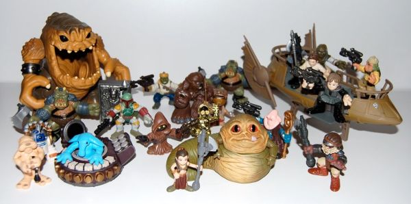 I like Galactic Heroes in general, but the Jabba-related ones are particularly good, in my opinion. Jabba himself is cute, and I’m a sucker for anything that makes Jabba cute. But they also have a large number of the characters you’d want for a Jabba’s Palace display, which makes it pretty fun to play with (again, if you have kids). I just with they had a Sy Snootles and Rancor Keeper, and maybe a few of the more exotic palace aliens like Amanaman. Once the Jabba’s Palace wave of Kubricks is released, these may have a contender for the “cuteness crown” but I think the Galactic Heroes will always have Kubricks beat when it comes to variety and playability.