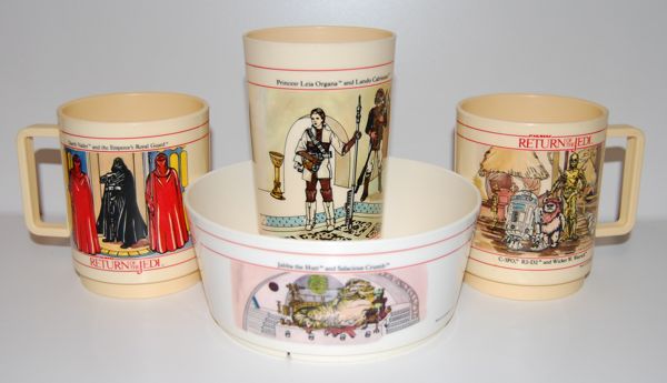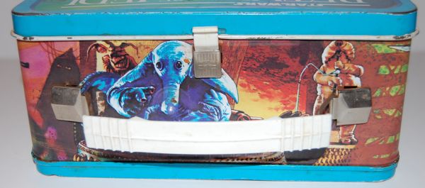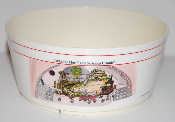 Produced in 1983, these were part of a set of 16 bookmarks featuring various characters from Return of the Jedi. I’m not sure if they were all sold as a set, but I imagine so. Most of them are quite well done and very colorful as well. The Jabba-related ones are Jabba, Leia as Boushh, and Skiff Guard Lando. I have all but two of these (missing Han and Boba Fett) and I really like the art style overall, although Leia looks a little off.