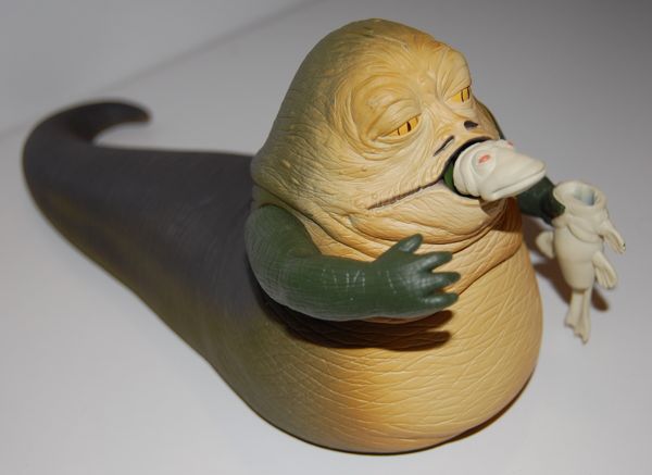 This was released around the time The Phantom Menace came out, and is based on the scene where Jabba bites the head off of a chuba and spits it at a gong to start the podrace. It’s the very definition of the term “mixed bag.” The sculpt is good. Not as good as Ultra Jabba if you want a Return of the Jedi Jabba, but a very good representation of the CGI model.