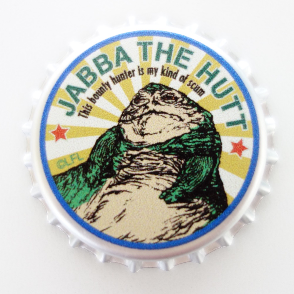 I imagine this was inspired by the Coca Cola bottle caps that were released in Japan in the late 70s. While those caps had the characters on the underside of the cap, the idea is very similar. At around an inch in diameter, this magnet is actually somewhat larger than a real soda bottle cap would be. On the bottom is a chunky and relatively strong magnet.