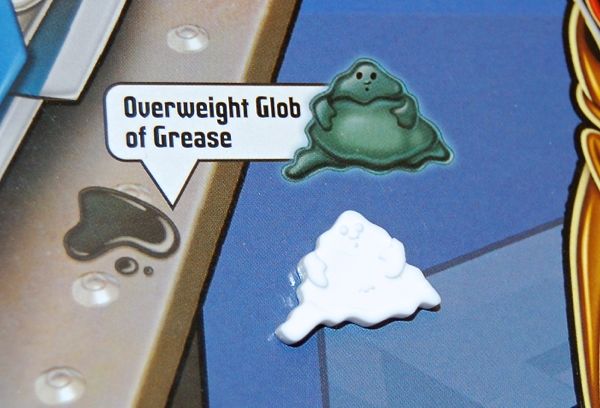 I know what you’re thinking. What does this have to do with Jabba? The pieces you’re removing have some Star Wars connection, like a “Rusty Restraining Bolt,” a “Bad Motivator,” or an “Overweight Glob of Grease.” Of course that phrase was originally said by C-3PO of R2 in A New Hope, but they’ve chosen to represent it as everyone’s favorite Hutt.