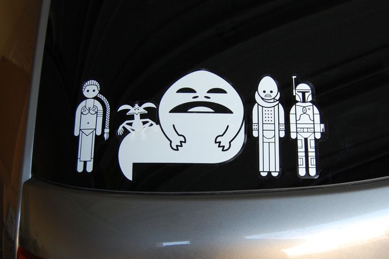 I first posted about these a couple of weeks ago. I’m not really a big fan of the little stickers that many people put in their cars’ rear windows to indicate each member of their family (often including pets). But I’ll have to admit that the Star Wars versions from Think Geek are pretty cute. The first pack includes quite a few Star Wars characters, including some “kid” versions so you could have (for example) Darth Vader be the father, Padme be the mother and Luke and Leia be the kids. Or you could even have your kids be stormtroopers.