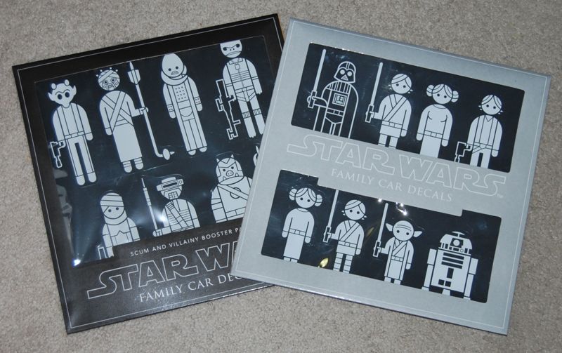 When they released a “Scum and Villainy Booster Pack” with most of my favorite characters (including a very respectable selection of Jabba’s Palace characters), I couldn’t resist picking up both sets. The booster pack includes a lot of monsters like the bantha, wampa, tauntaun, and rancor, plus a lot of cool aliens. Obviously, these are less suited to the “represent your family with stickers” concept, but that’s fine with me. They’re great for making a little scene on your car window or even on a window in a kid’s room.