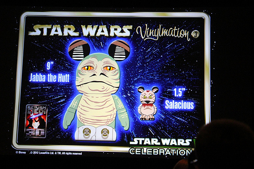 One announcement at Celebration VI that I had missed was from Disney. They announced a line of Star Wars/Cars mashup vehicles, which should be interesting, although there is no Jabba as of yet. They also announced several Jabba-related items that I will talk about below. All of these photos are taken from Inside The Magic.