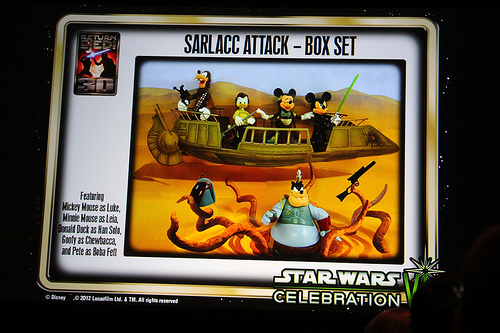 I’ve been watching Disney’s line of figures depicting Disney characters as Star Wars characters to see if they’d ever add a Jabba. No luck on that front so far (not sure which Disney character would be appropriate to play Jabba, either). But they are at least going to make a Sarlacc Attack boxed set.