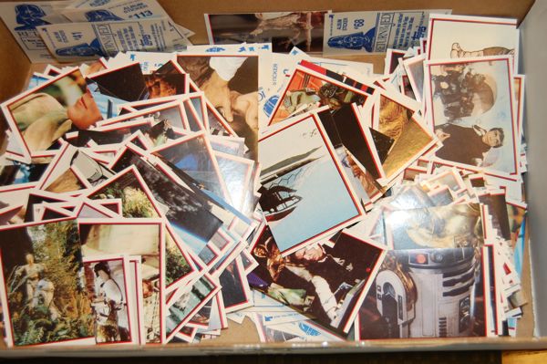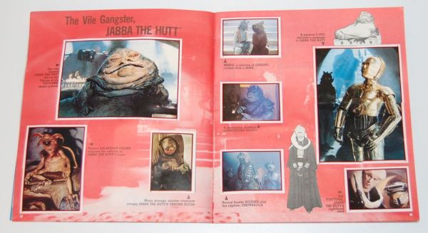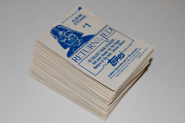 There were 5 stickers in each pack, and you needed 180 stickers to complete the album. I got a couple of mostly full boxes of stickers from ebay and decided to work with my 7-year-old son to finally complete an album. We must’ve opened close to 100 packs (although technically they were already open, as the glue holding the packs together had dried out long ago). Below, you can see the stack of all 180 stickers — the fruit of a couple of hours of opening and sorting. Toward the end in particular, we would only find one new sticker for every few packs, and I was getting a little worried that we might not have a complete set even with so many packs (that’s what happened when I tried to get a full set for the Jabba’s Palace Customizable Card Game set). But in the end, we were able to find them all.