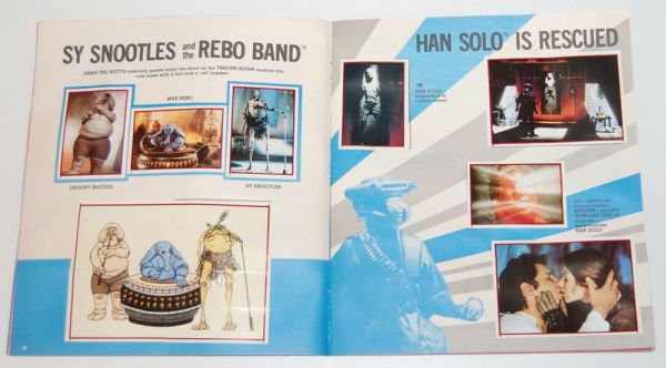 Each card has a photo from Return of the Jedi along with some explanatory text. For example, the Google translation of the caption on the first card below reads (with a little editing):