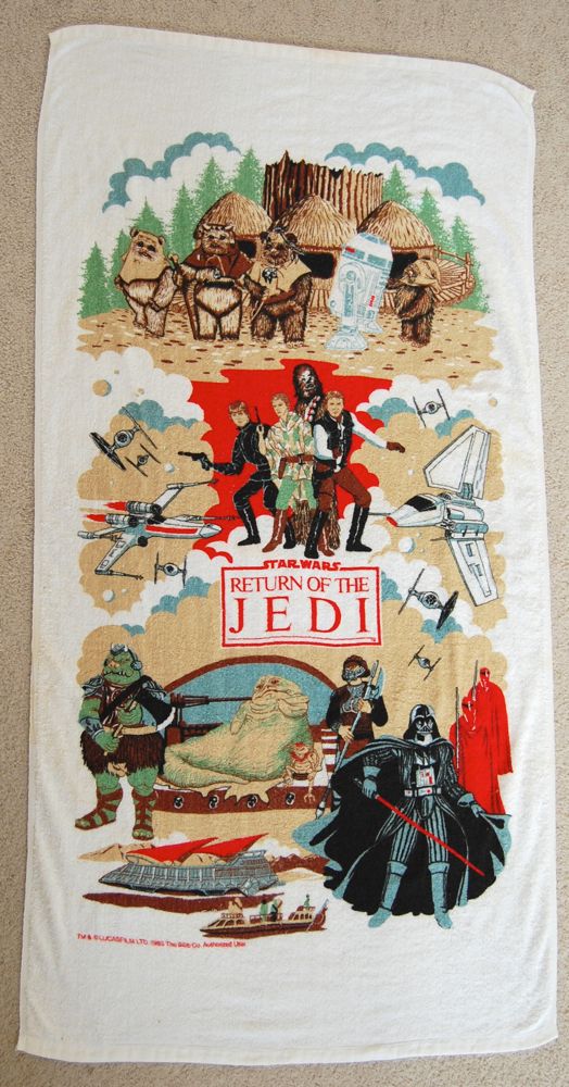 I’ve already posted about the other Return of the Jedi-themed beach towel that Bibb put out. That one was a bit more Jabba-centric, while this one seems more like a representation of the movie as a whole, with Jabba’s palace making up roughly a third of it. I didn’t break out the measuring tape for this one, but I assume it’s the same as the other towel — around 30″ wide by 58″ long.