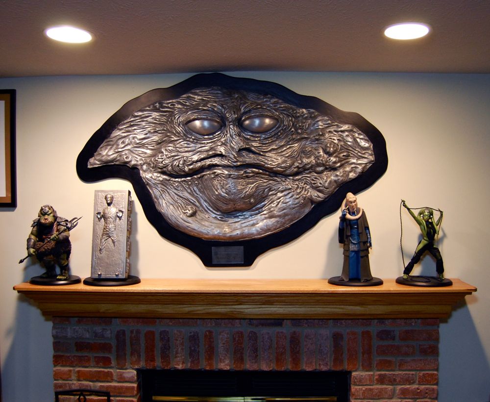 He made two versions of the bust: one realistically painted one and one metallic version. I prefer the metallic version, since with life-sized pieces in particular it can be difficult to get a paint job to really look realistic, and I like how you can see all of the details of the sculpt well in this version. Plus, it has a “Jabba in Carbonite” look that’s pretty cool. “Han Solo’s Revenge” indeed! 😀 Since the metallic version is also cheaper, it was a no-brainer for me.