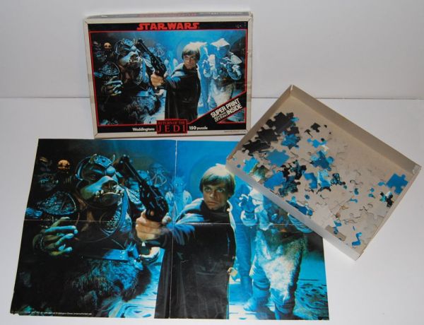 This puzzle is from the UK and features a photo of Jedi Luke just after he steals a blaster from one of Jabba’s guards. I’m pretty sure this is just a reenactment of the scene rather than a shot taken directly from the film. The puzzle came with a “super print” — an 11 x 17 poster of the same photo that is on the puzzle. I think it’s the same size as the puzzle would be if you put it together, which is actually kind of a nice extra. Most of these that you find today are missing the print.