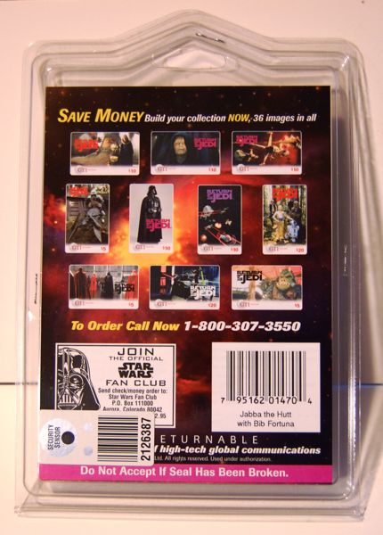 GTI Telecom released a whole line of Star Wars telephone cards — 36 of them if the back of the package is to be believed. At retail prices of $10 to $20 apiece, you would have had to do an awful lot of calling to get the complete collection.